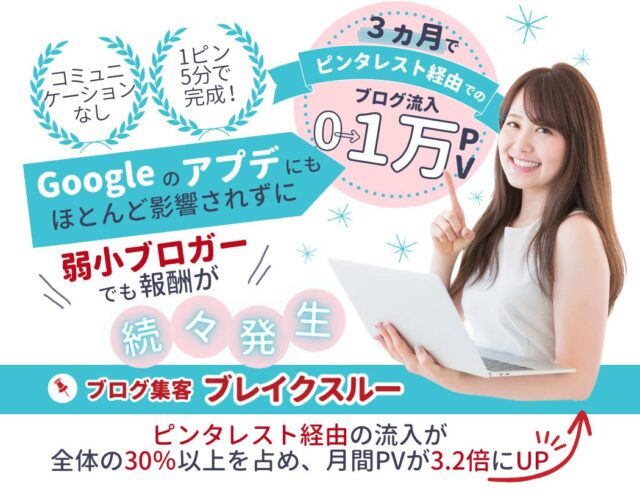 このピンタレストを用いた集客方法を手軽に学べるのが「ピンタレスト×ブログ戦略 ブレイクスルー」です。