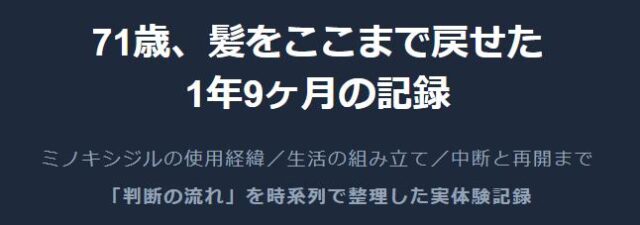 >>「71歳、髪をここまで戻せた1年9ヶ月の記録」の公式サイトはこちら