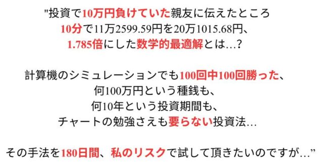 この数学的知識を活用したトレード手法を誰でも実践できるようにしたのが「数学的投資法」です。