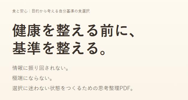 「食と安心 目的から考える自分基準の食選択」では、自分なりの基準を定めるための手順がわかります。